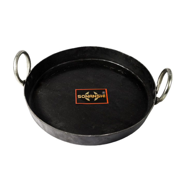 Sonanshi Iron/Loha Flat Kadai/Tavi/Fry Pan/Tai for Making Jalebi, Dal Tadka (12 Inces Dia)