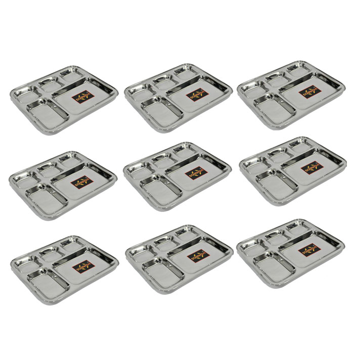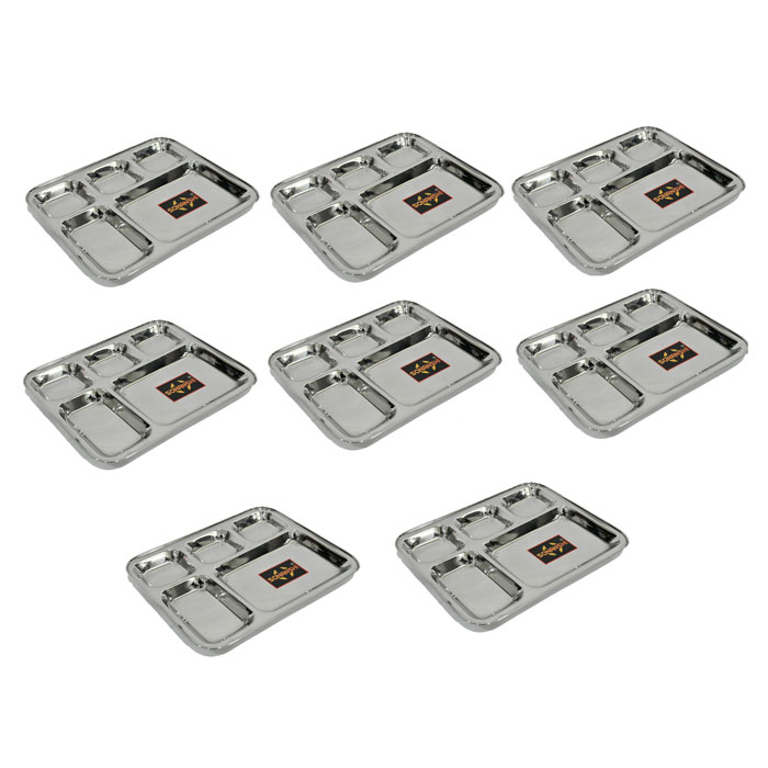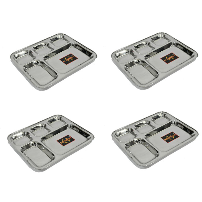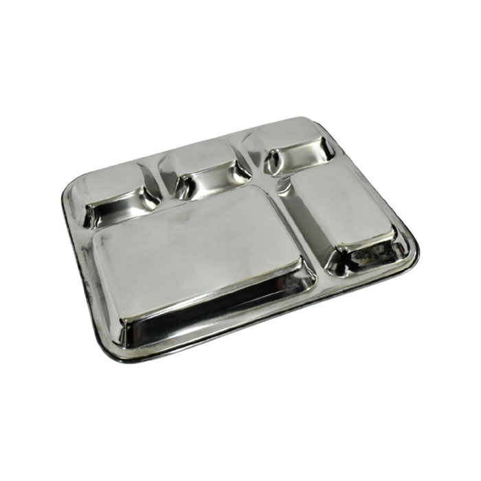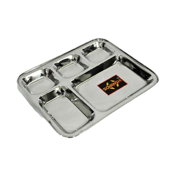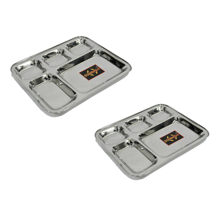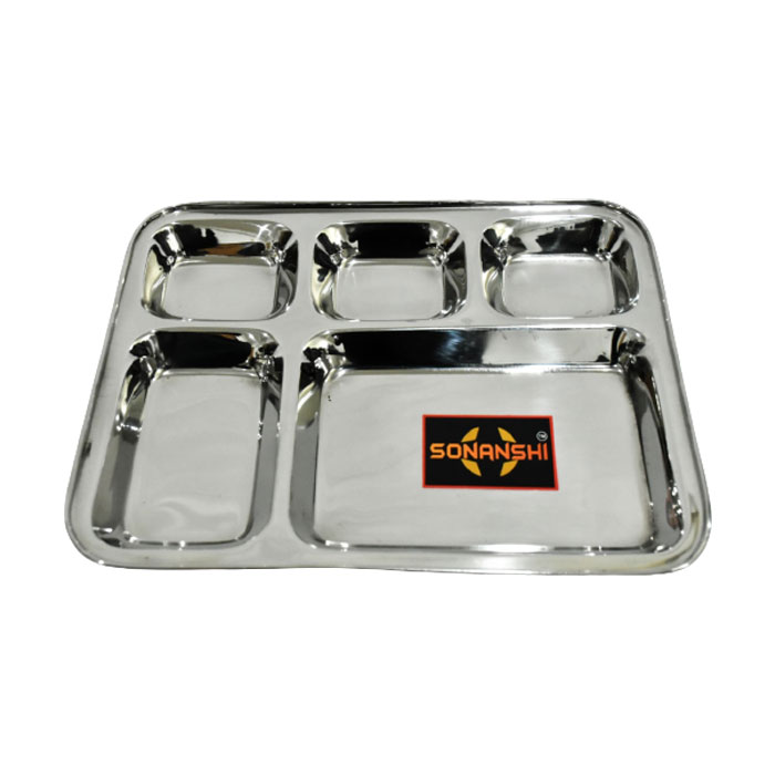 - This plate can be used as a unique server for food, chocolates or sweets. Our 5 compartment stainless steel plate makes it quite spacious and accommodating to have all the food items in a single plate without any spilling of food issue.